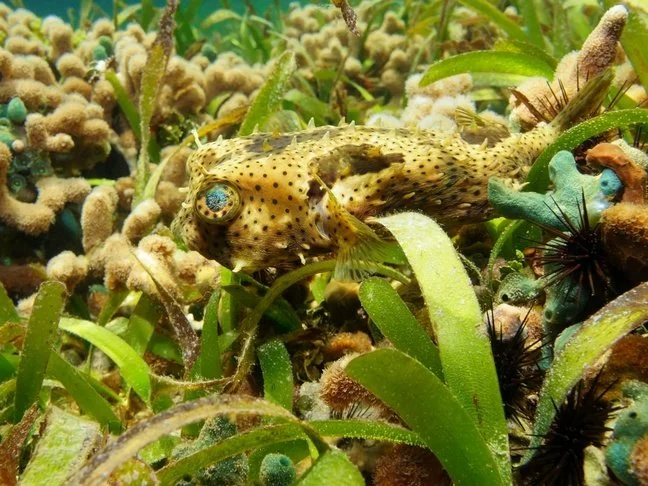 Lawson's Rock reef in Roatan is a stunning underwater haven located just offshore, accessible via a long swim or kayak. The reef features an incredible wall that drops hundreds of feet, covered in vibrant coral and offering unmatched snorkeling and diving with visibility often exceeding 100 feet. There was a resident Bridled Burrfish under the dock that we were lucky enough to observe multiple times during the week.
